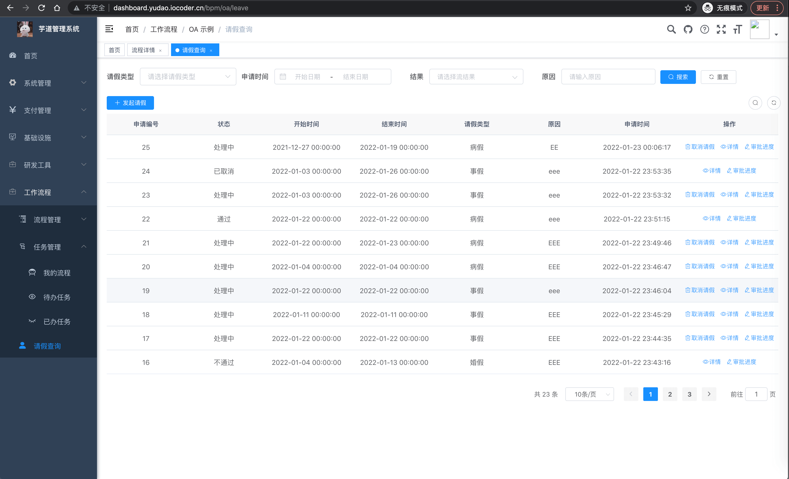 OA 请假 OA请假-列表 OA请假-发起 OA请假-详情
